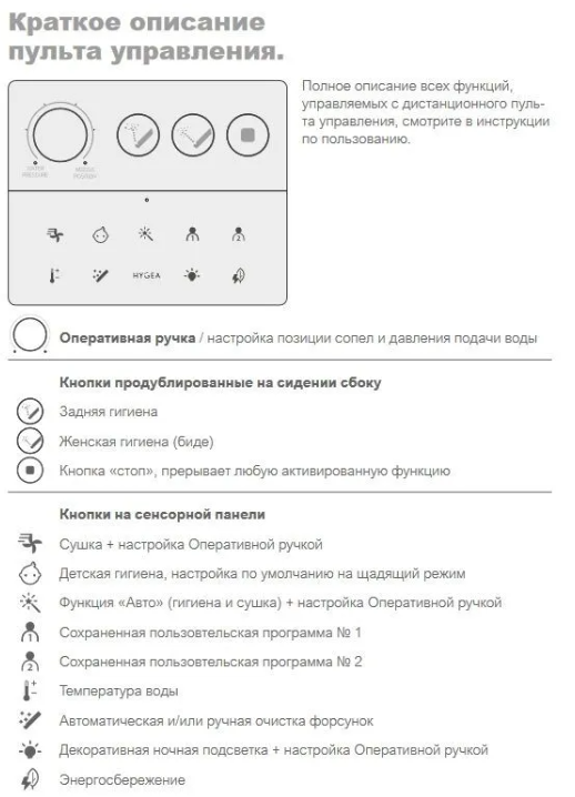 - автоматический режим объединяющий в себе гигиену и сушку;