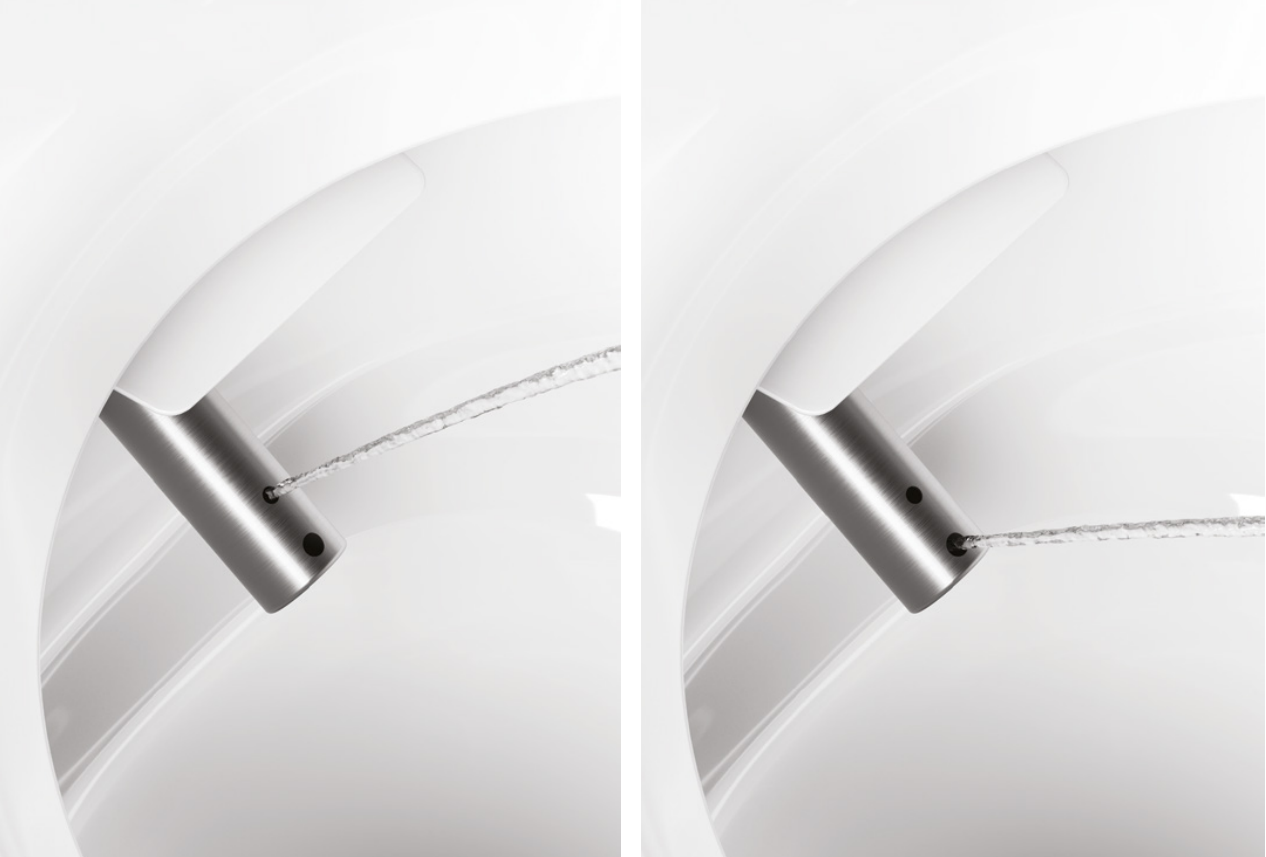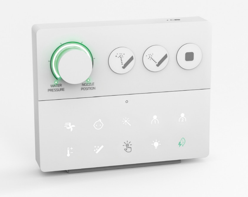 - выдвигающуюся форсунку из нержавеющей стали, с пятью положениями, температуру воды из форсунки можно регулировать переключением трех режимов: 33/38/39 градусов, также можно регулировать напор струи, присутствует режим задней гигиены, женской гигиены, массаж и детский режим, который настроен на меньший напор и максимальное выдвижение форсунки.
