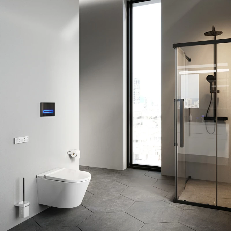 Коническая чаша со строгими выверенными формами - традиционный немецкий дизайн. Авторство дизайна принадлежит собственной студии AM.PM Design. Интегрированная электронная крышка-биде оснащена смарт-панелью позволяющей включать/выключать функцию биде и фен. Вы также можете изменять настройки с помощью пульта управления. Крышка-биде разработана специально для керамики Inspire и является продолжением лаконичного дизайна чаши. - Три режима: общий обмыв дамский душ и массажный душ. - Самоочищающаяся форсунка из нержавеющей стали. - Ночная подсветка. - Экономия энергии с режимом энергосбережения. - Сиденье выполнено из дюропласта. - Функция подогрева сиденья. - Функция сушки. - Функция дезодорации. - Бесконтактный датчик подъема сиденья.