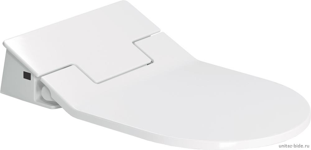 Сиденье для унитаза с функцией биде, Duravit, SensoWash® Slim, ширина, мм-365, глубина, мм-540, тип шарниров-с плавным опусканием SoftClose, материал сиденья-дюропласт, со скрытым подключением, включая ПДУ, функции-блокировки с помощью пульта дистанционного управления, душ для ягодиц, для дам и комфортный душ, температура воды, а также положение душевого стержня и интенсивность душевой струи устанавливаются индивидуально, самоочищающаяся душевая насадка, ночная подсветка, цвет-белый